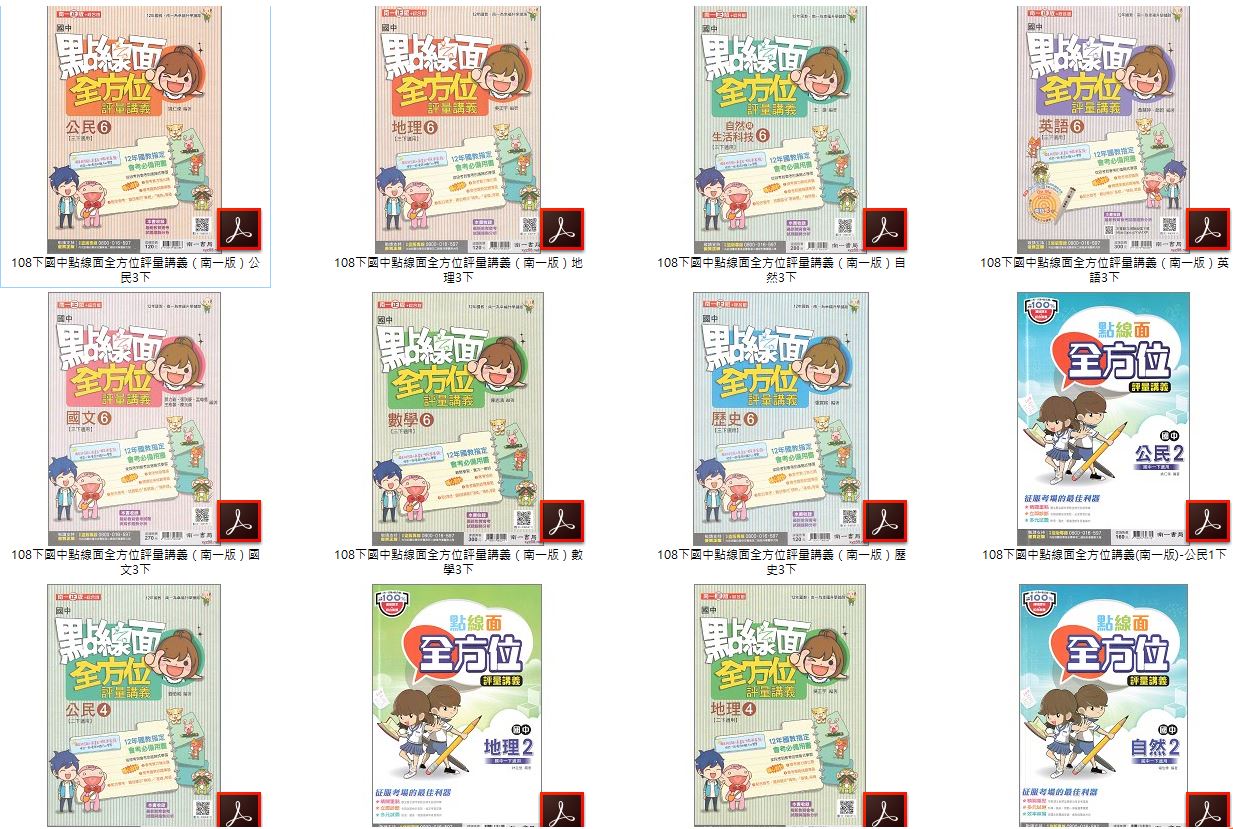 108學年下學期 國中點線面全方位評量講義 南一版 1-3年級 全科目 講義光碟DVD版