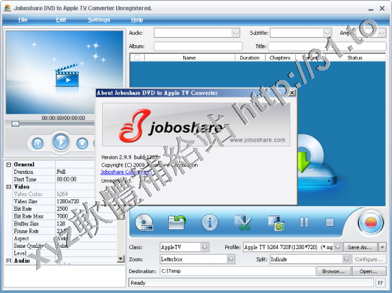 Joboshare DVD to Apple TV Converter v2.9.9.1227 英文正式版(音視頻轉換軟體)